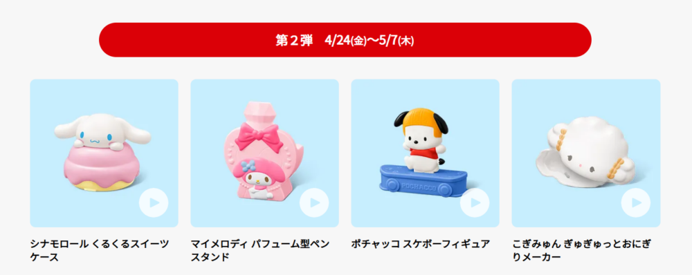 | 第2弾 | 2026年4月24日(金)~5月7日(木) 4種類+ひみつのおもちゃ |