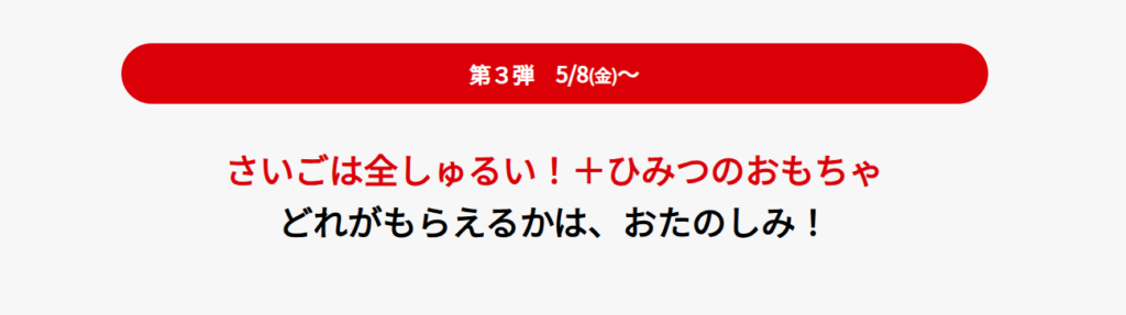 | 第3段 | 2026年5月8日(金)~なくなり次第終了 全種類+ひみつのおもちゃ |