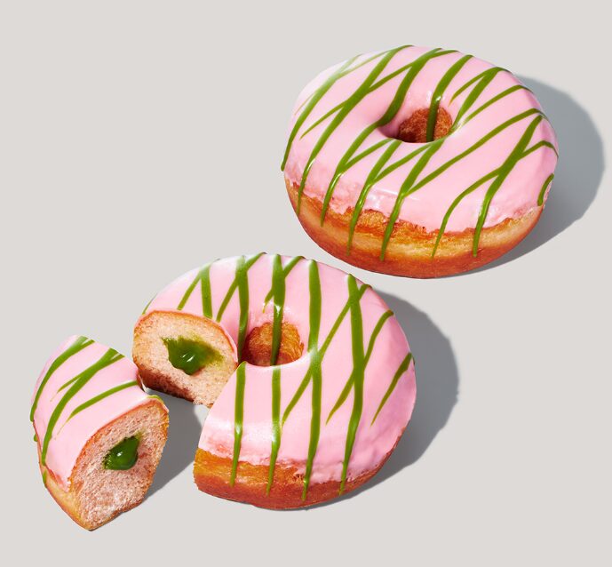 特徴ふんわりと桜が香るドーナツ生地、中には抹茶クリーム、トップは桜と抹茶のコーティング